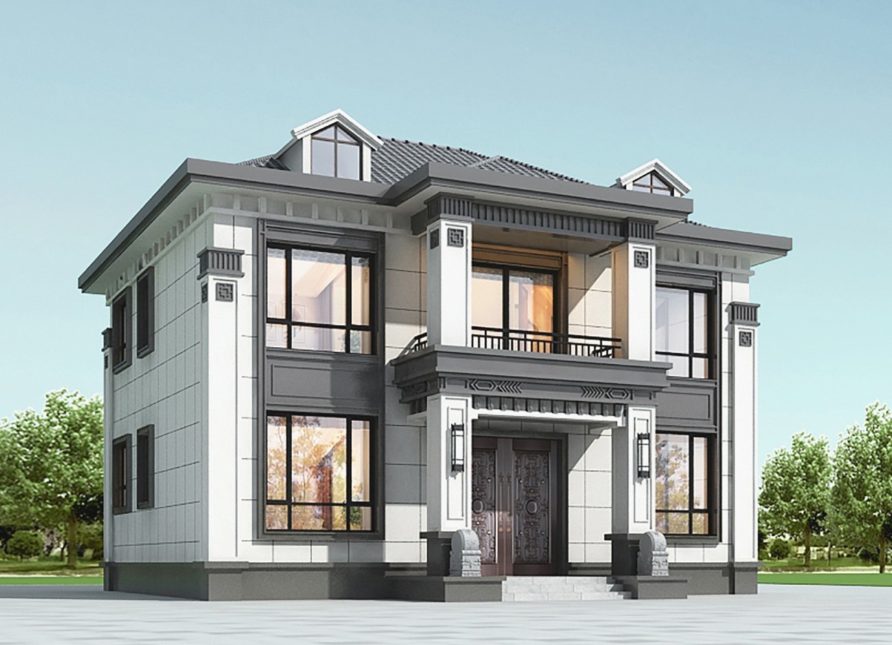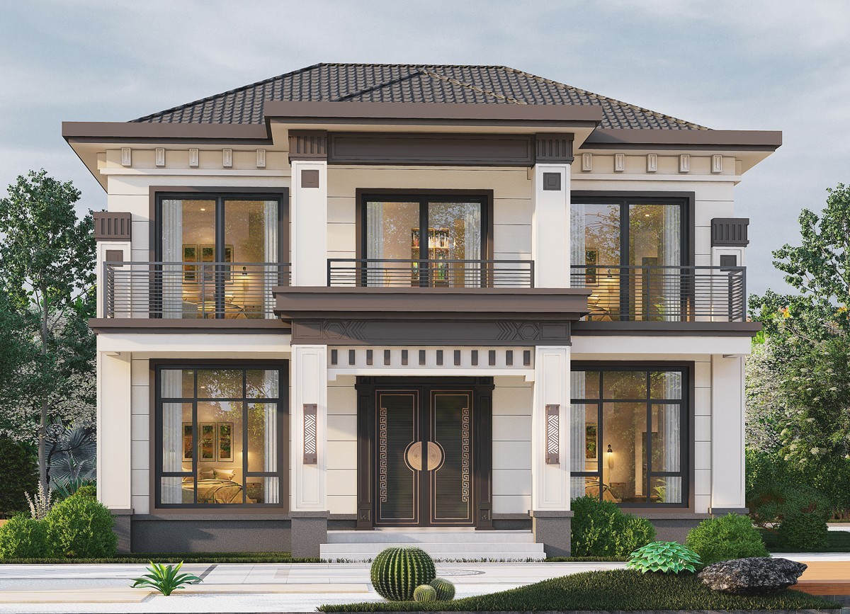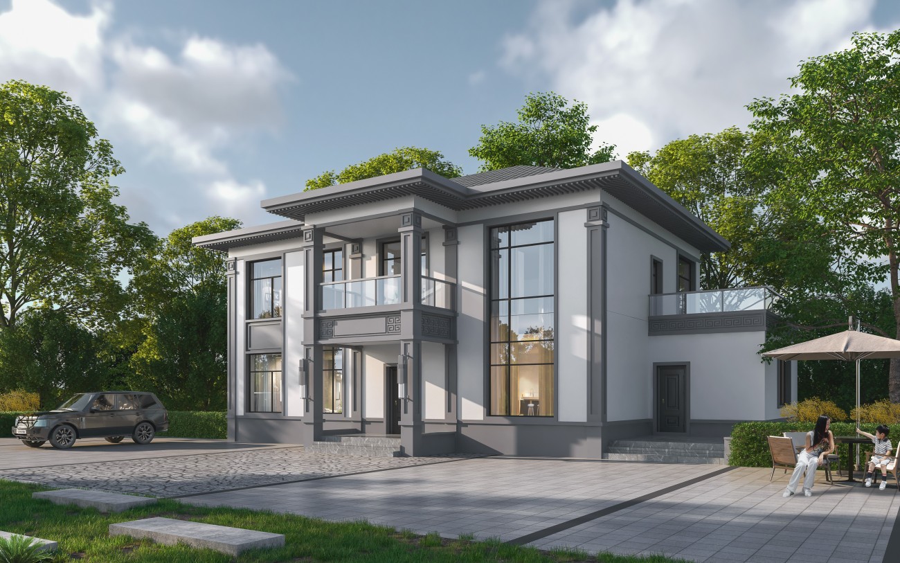 顺庆005 两层新中式(11.36x11.76米)-【易设计】