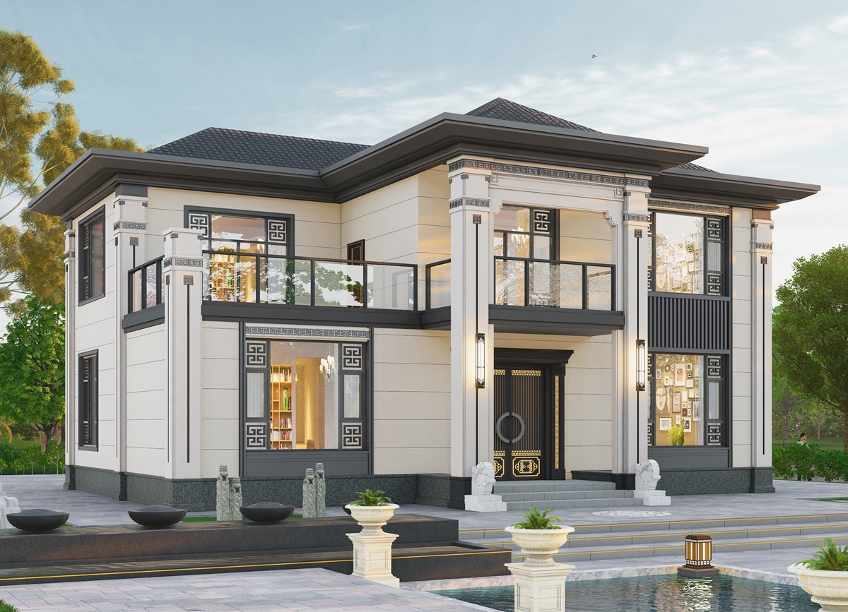 顺庆009 两层新中式(11.45x14.76米)-【易设计】